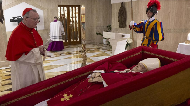 شاهد.. الفاتيكان يستعد لجنازة بابا الفاتيكان وينشر الصور الأولى لفرنسيس بنعشه الخشبى