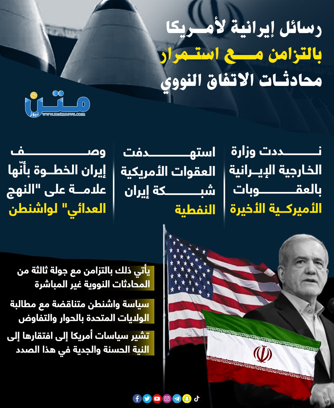 رسائل إيرانية لأمريكا بالتزامن مع استمرار محادثات الاتفاق النووي (إنفوجراف)
