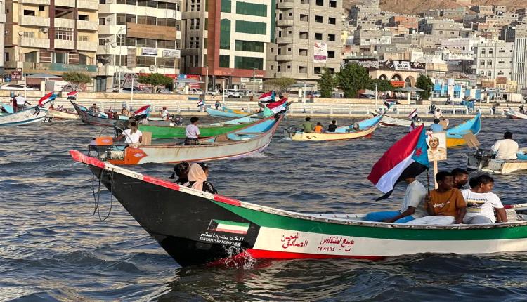 عرض بحري بأعلام الجنوب في المكلا احتفالًا بذكرى تحرير ساحل حضرموت