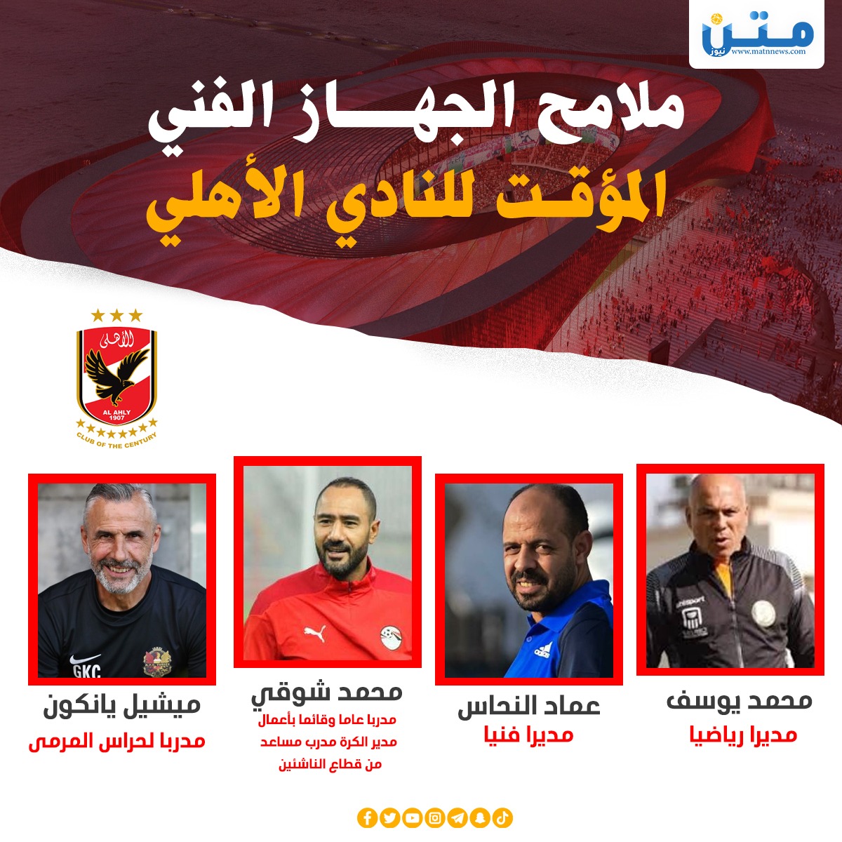 "متن نيوز" ينشر تشكيل الجهاز الفني المؤقت للنادي الأهلي