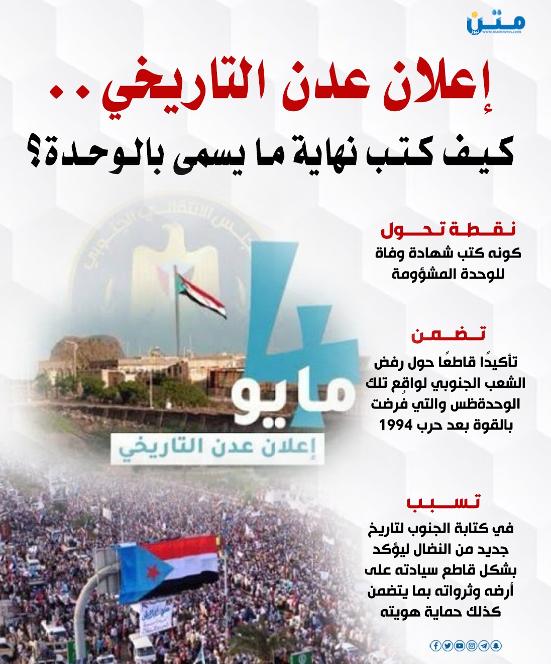 إعلان عدن التاريخي.. كيف كتب نهاية ما يسمى بالوحدة؟ (انفوجراف)