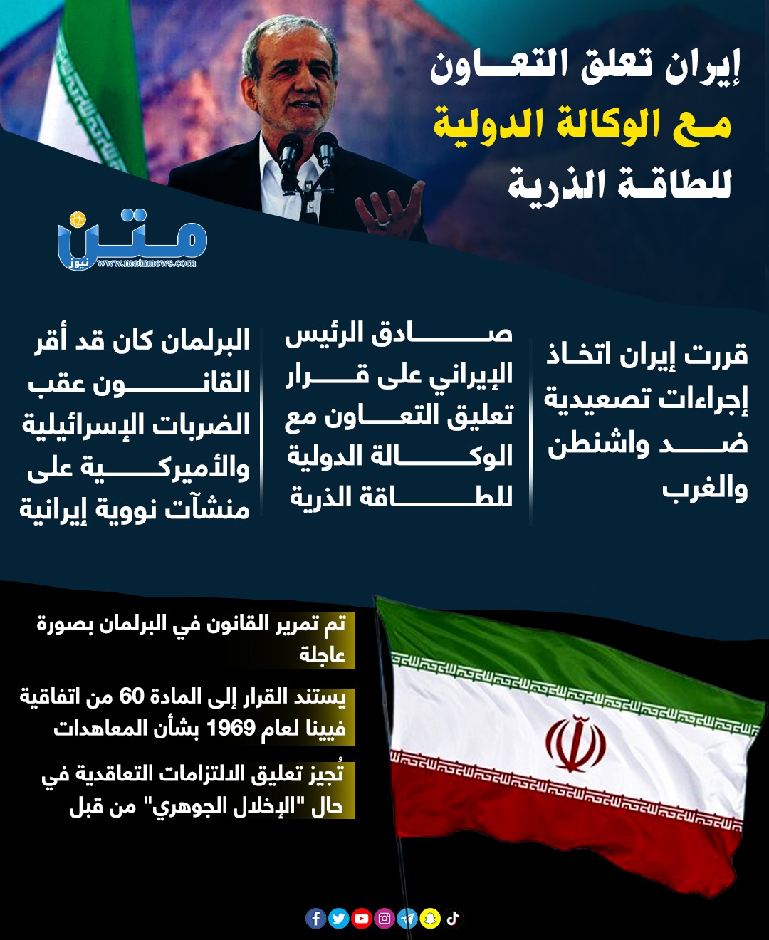 - البرلمان كان قد أقر القانون عقب الضربات الإسرائيلية والأميركية على منشآت نووية إيرانية.