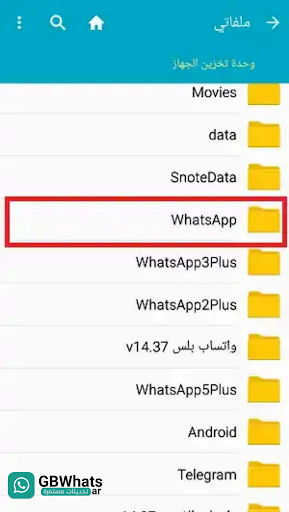 - ليكن في علمك، أن هذا الاسم يتغير من نسخة إلى نسخة، فنسخة واتساب الذهبي التي في موقعنا اسمها WhatsApp2Plus ونسخة واتساب جي بي اسم ملفها GBWhatsApp، وهذا ينطبق كما قلنا فقط على نسخ واتساب الموجودة في الموقع، أما النسخ الأخرى من مطورين آخرين فقد يتغير الاسم، وفقط بعد تثبيتك للنسخة تتوجه إلى مدير الملفات وستجد اسمها هناك. بعد تغييرك لاسم ملف واتساب إلى اسم ملف واتساب الذهبي.