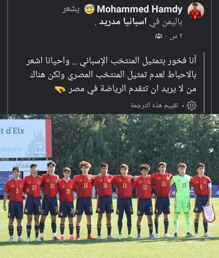 انتشر خلال الساعات الأخيرة منشورًا عبر موقع التواصل الاجتماعي "فيسبوك" للاعب يدعى محمد حمدي، ويزعم أنه مصري، وقرر أن يمثل منتخب إسبانيا، وعبّر عن إحباطه من مسؤولي الرياضة المصرية بشدة.