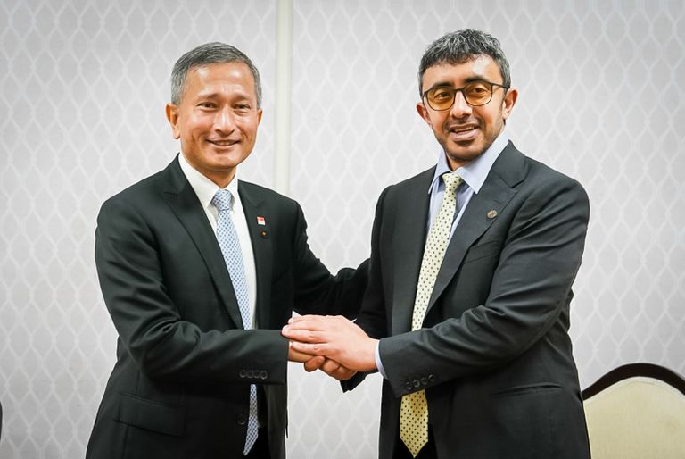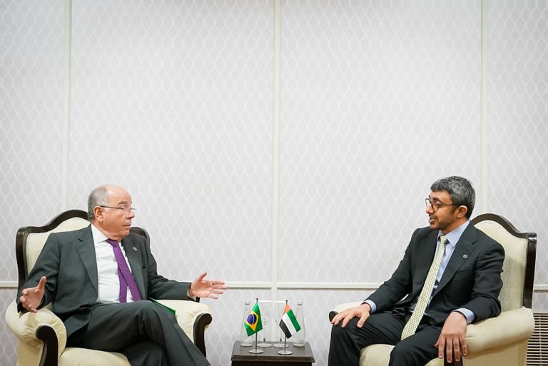 حيث التقى الشيخ عبدالله بن زايد مع مولود تشاووش أوغلو وزير الخارجية التركي وجيمس كليفرلي وزير الخارجية والتنمية البريطاني وفيفيان بالاكريشنان وزير خارجية سنغافورة وماورو فييرا وزير خارجية البرازيل.