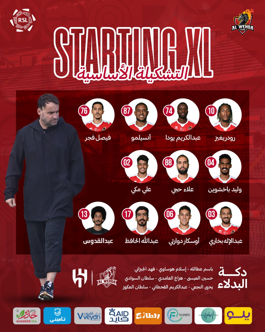خط الدفاع: محمد البريك – خليفة الدوسري – علي البليهي – حمد اليامي