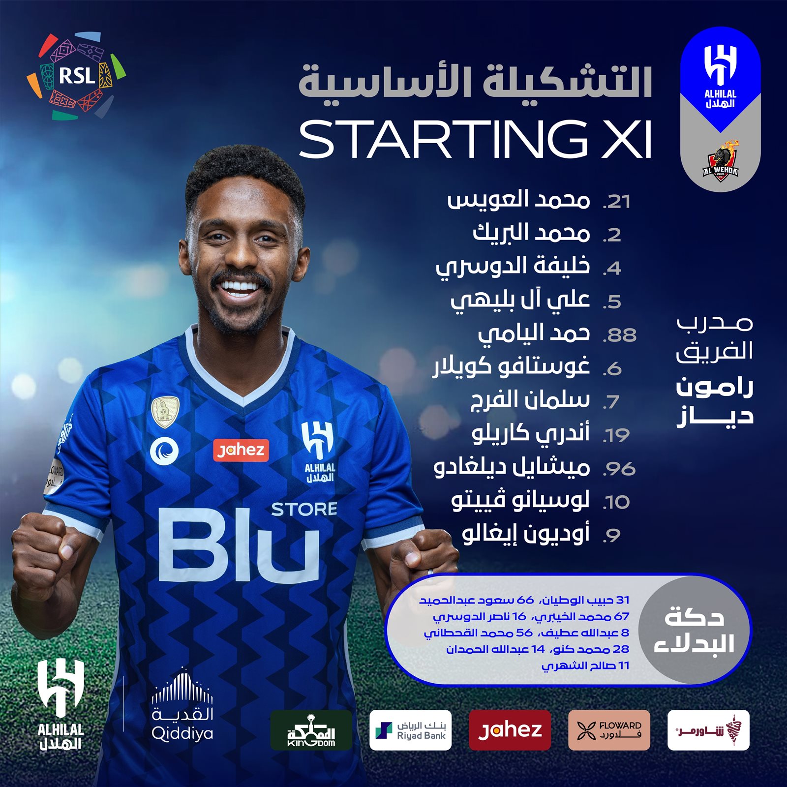 ويخوض الهلال المباراة بالتشكيل التالي: