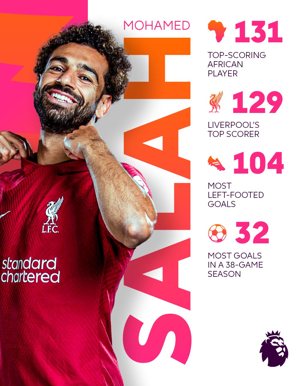 ونشر الحساب الرسمي صورة لمحمد صلاح مدون عليها عددا من الأرقام التاريخية جاءت كالتالي: