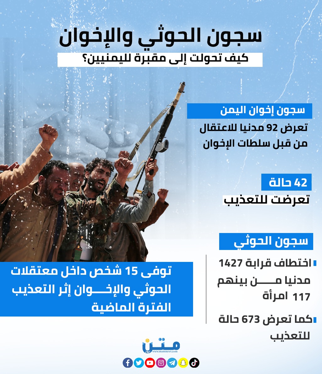 سجون الحوثي والإخوان.. كيف تحولت إلى مقبرة لليمنيين؟ (انفوجراف)