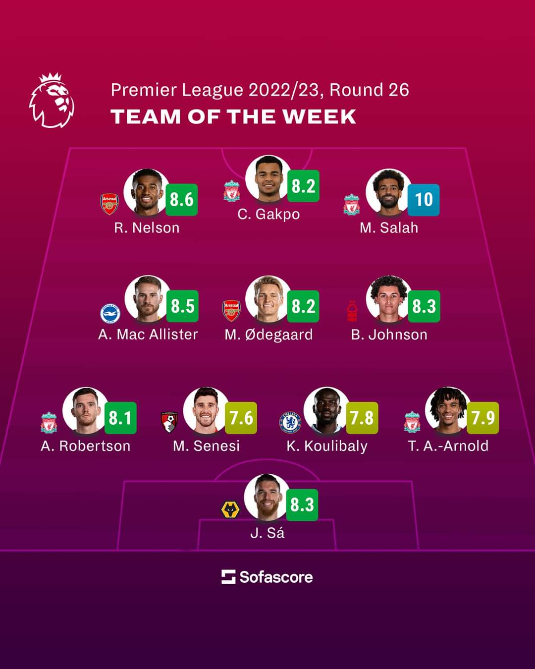 وجاء التشكيل المثالي للجولة 26 من الدوري الإنجليزي، كالتالي: