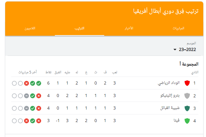 بعد مبارة الرجاء.. ما هو ترتيب دوري أبطال إفريقيا 2022_2023؟