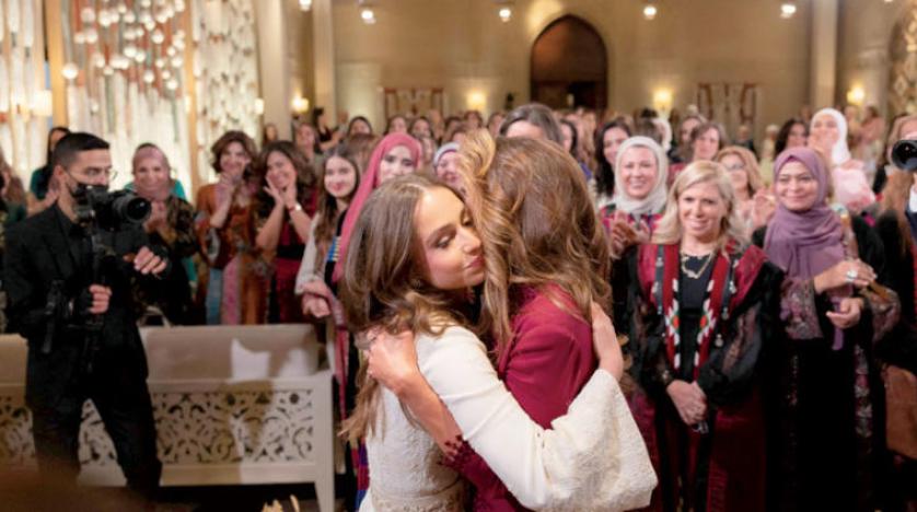 وألقت الملكة رانيا كلمة خلال الحفل، واصفة المناسبة بأنها "غير عادية"، وأعربت عن شعورها بـ "مشاعر مختلطة"، مشيرة إلى أنها أول مرة تكون "أم العروس".