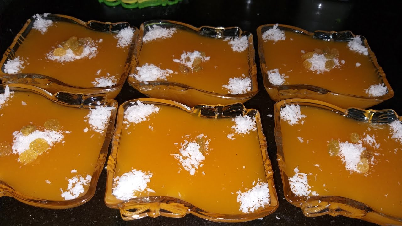 - صبي قمر الدين في الأطباق الصغيرة وزينيه بالمكسرات أو جوز الهند والزبيب فقط.