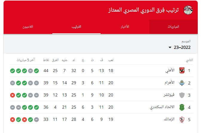 بعد الفوز المثير من قبل سموحة على المقاولون العرب.. ما هو ترتيب الدوري المصري الممتاز 2022_2023؟