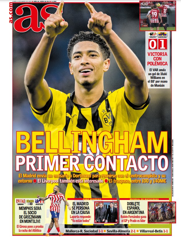 حيث أكدت صحيفة آس العالمية أن ريال مدريد أرسل وفدًا إلى ألمانيا للقاء بيلينجهام لاعب خط الوسط لفريق بروسيا دورتموند وممثليه، وإتمام الصفقة.