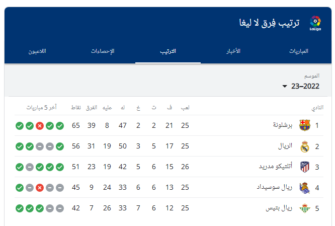 بعد مبارة أتلتيكو مدريد.. ما هو ترتيب فرق الدوري الإسباني 2022_2023؟