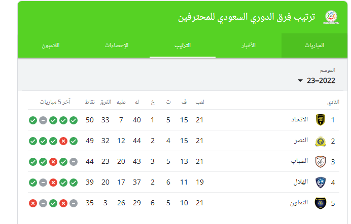 ترتيب دوري روشن السعودي 2022_2023.. وهدافي البطولة