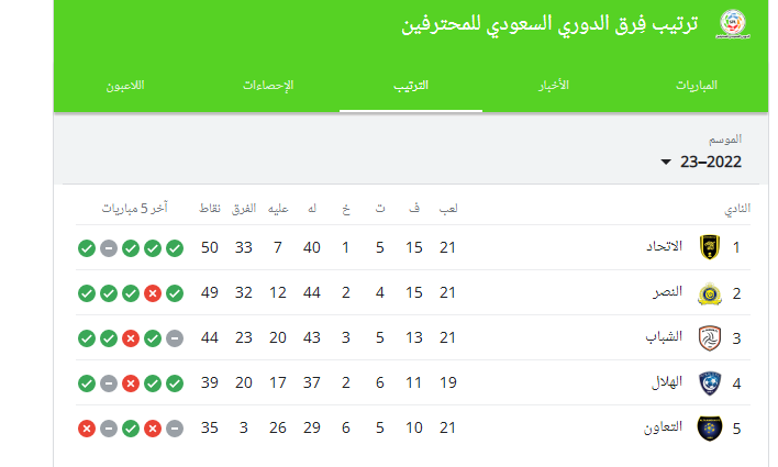 تزايد البحث خلال الساعات الماضية حول ترتيب فِرق الدوري السعودي للمحترفين 2022-2023.