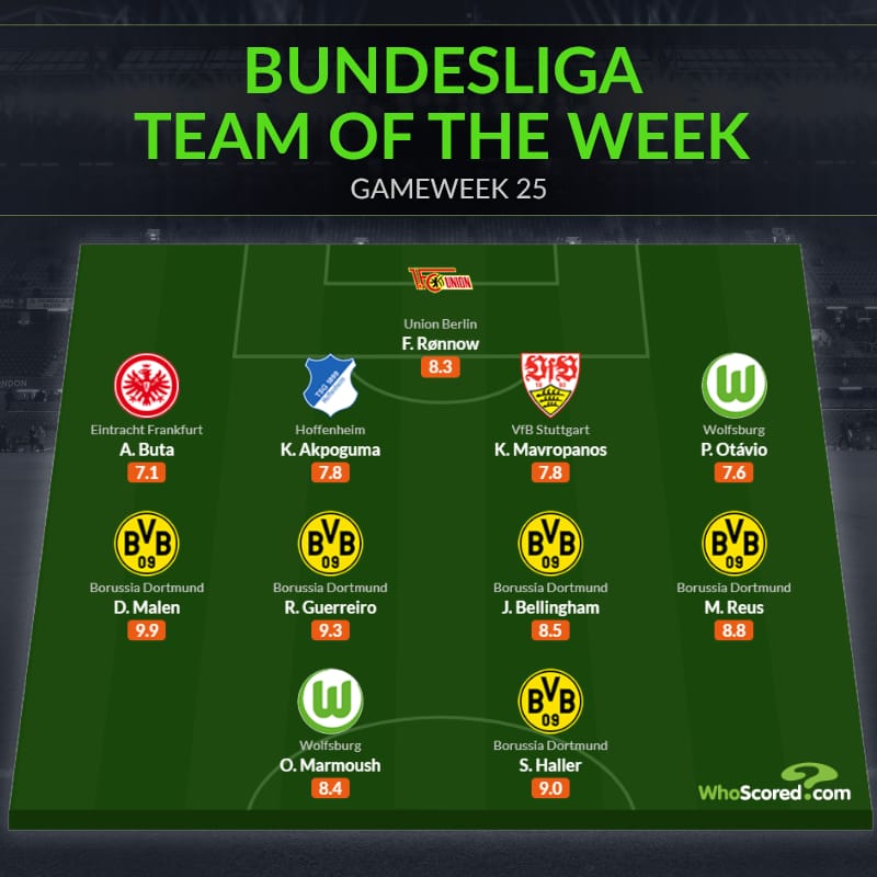 ونشرت شبكة هوسكورد العالمية عبر حسابها الرسمي على موقع التواصل الاجتماعي تويتر، التشكيلة المثالية للجولة 25 من بطولة الألماني الممتاز.