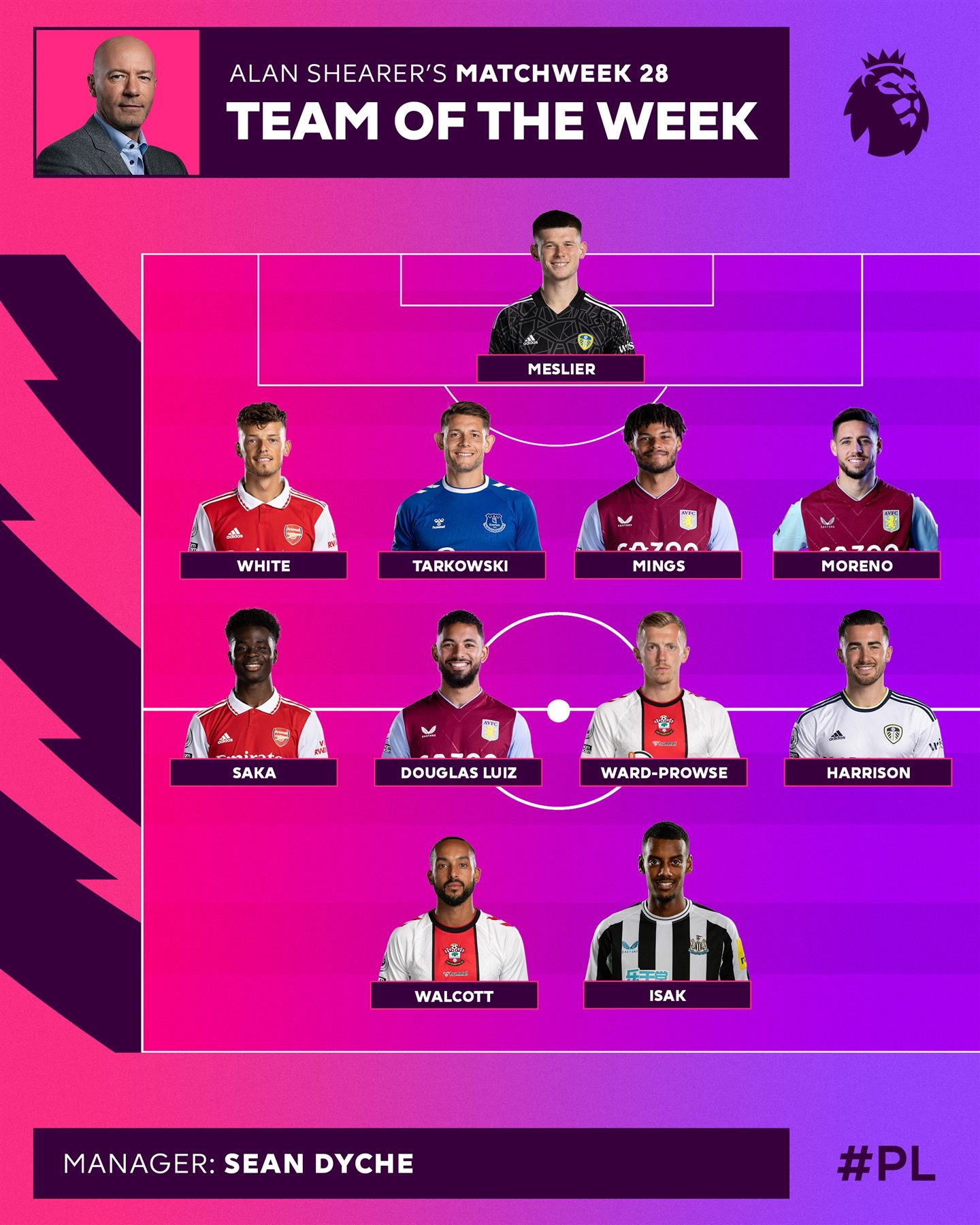 وبحسب الحساب الرسمي للدوري الإنجليزي، جاء اختيار التشكيل المثالي للجولة 28 للبريمرليج من جانب الأسطورة آلان شيرر.