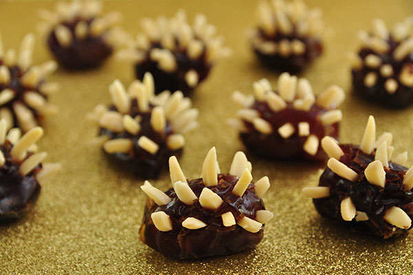 - ضعي حبة لوز داخل كل حبة من التمر كما يمكن وضع أي نوع آخر من المكسرات.