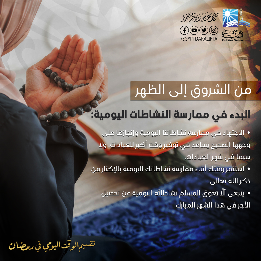 من الشروق إلى الظهر وقت مبارك في شهر رمضان يمكن استغلاله إيمانيا بهذه العبادات التي أوضحتها دار الإفتاء المصرية.
