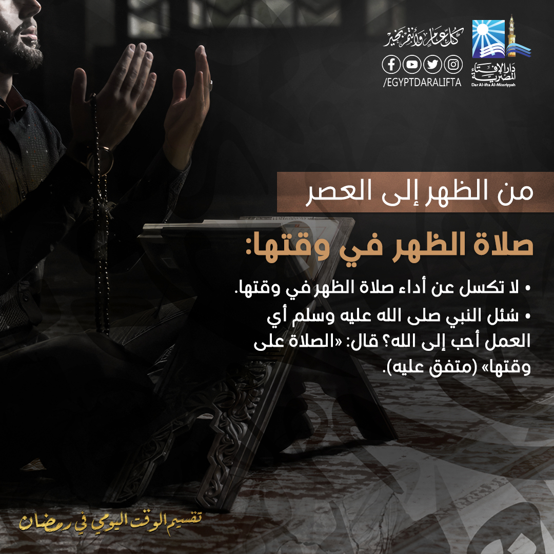 من الظهر إلى العصر ساعات مباركة يمكن اغتنامها لمن يتساءل عن أعظم ما يستقبل به شهر رمضان؟ كالتالي: