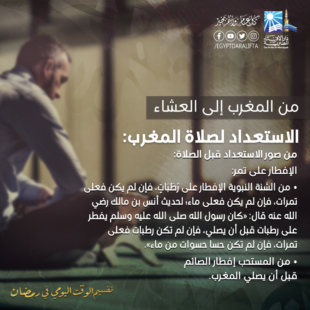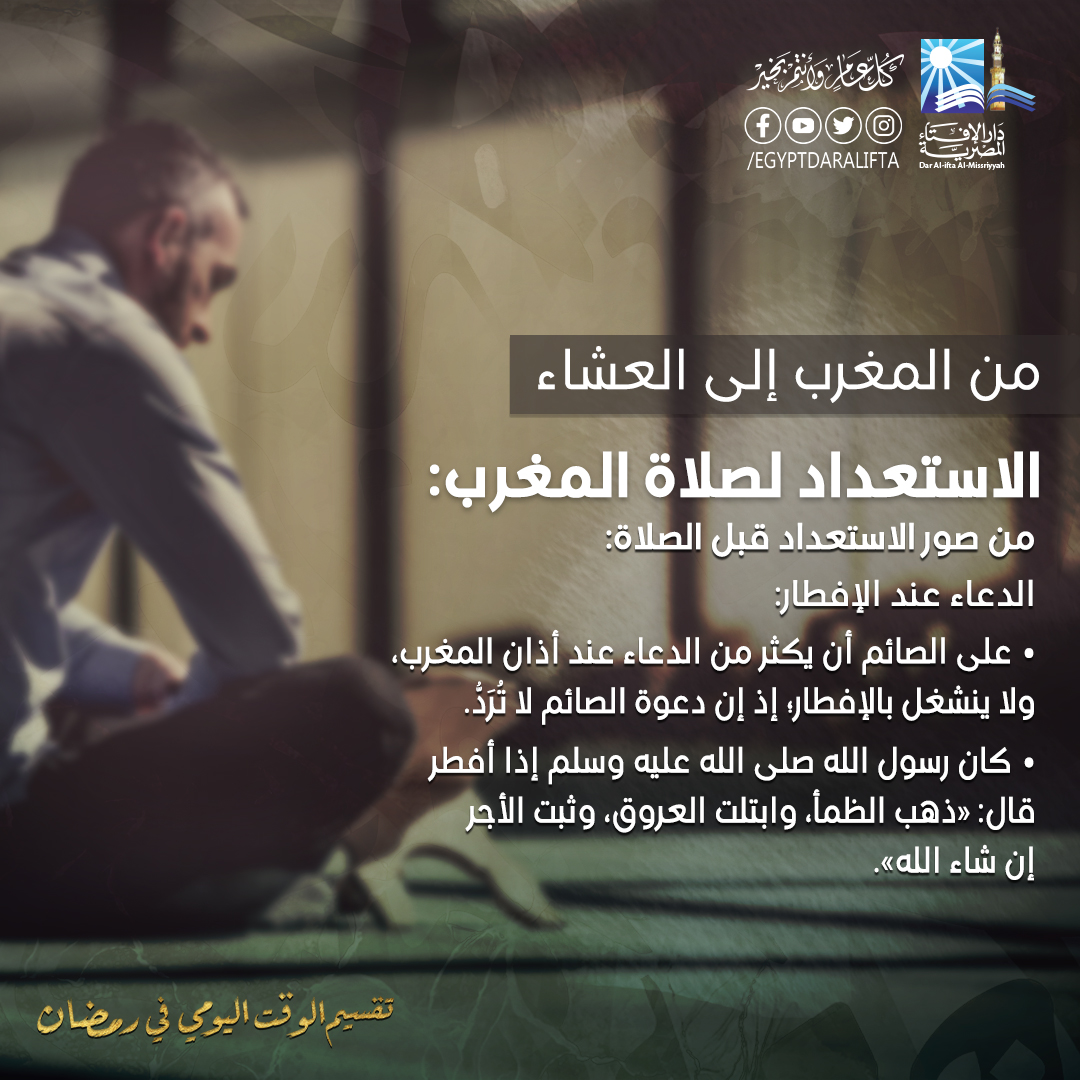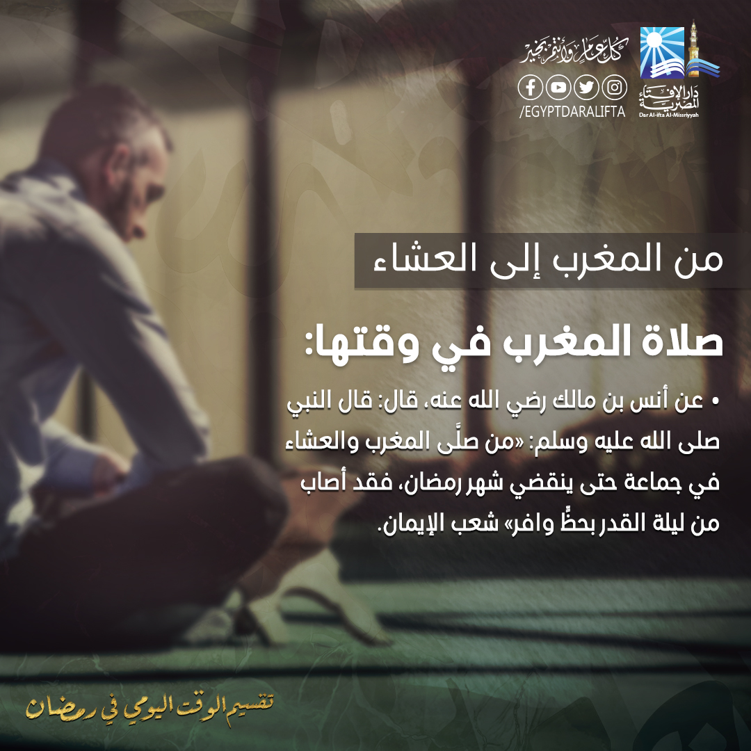 من المغرب إلى العشاء وقت مبارك أيضا فجميع أوقات شهر رمضان مباركة، ولذلك نوضح لكم أهمية تقسيم الوقت في رمضان كالتالي: