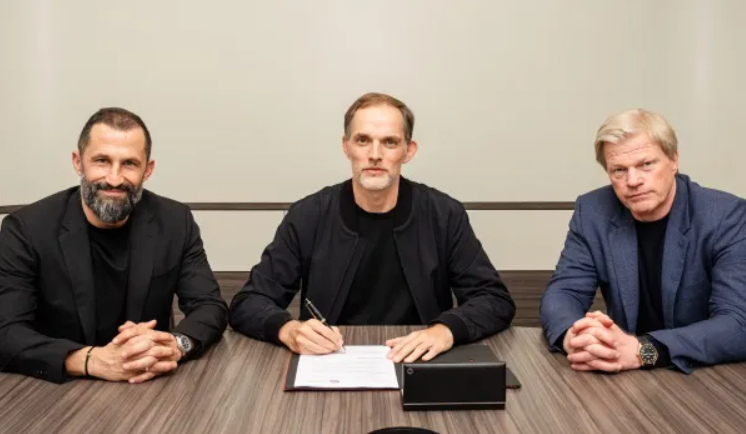 ووقع توماس توخيل عقود تدريب بايرن ميونخ، أمام وسائل الإعلام في حضور كل من أوليفر كان المدير التنفيذي للنادي وحسن صالح حميديتش المدير الرياضي.