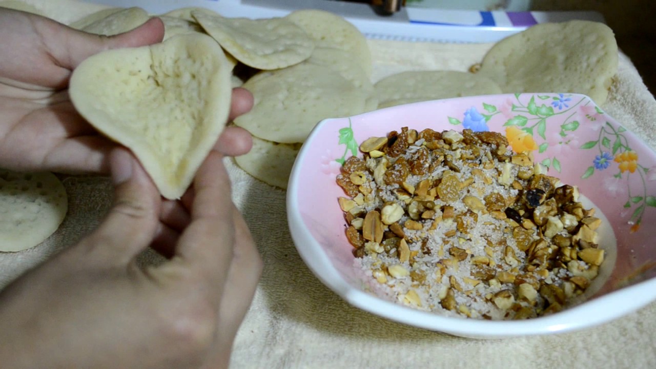 - تقلب حشوة المكسرات كلها مع بعضها ويتم الحشو بها في القطايف.