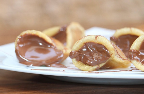 - احشي القطايف بالنوتيلا في الفتحة الظاهرة من القطايف.