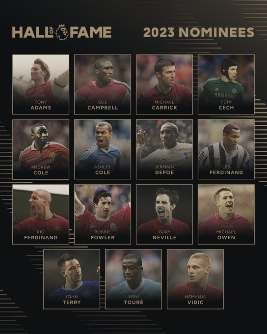 ونشرت رابطة الدوري الإنجليزي قائمة مكونة من 15 لاعبًا معتزلًا، لاختيار 3 منهم فقط، للانضمام لقاعة المشاهير.