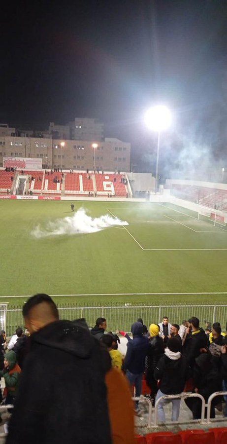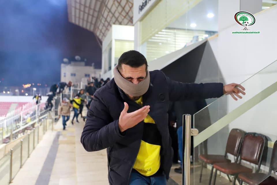 وقامت قوات الاحتلال بإطلاق قنابل الغاز المسيل للدموع على الجماهير الموجودة في مدرجات ملعب المباراة، والتي حضرت لمشاهدة نهائي كأس فلسطين.