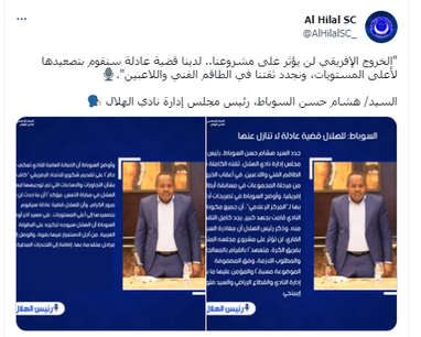 وجاء ما نشره نادي الهلال السوداني كالتالي: