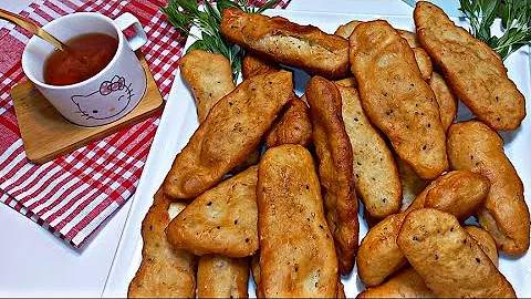 وبعد التخمير نضع العجينة على سطح مرشوش بالقليل من الدقيق ونقسمها إلى قطع صغيرة متساوية الحجم ثم نفرد كل قطعة باليد حتى تصبح رقيقة ثم نقليها في الزيت الحار مع التقليب حتى تحمر من الجهتين.