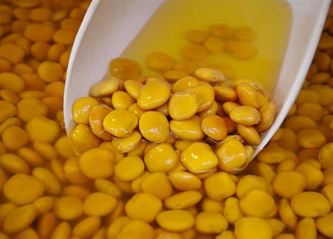 - يضاف للترمس والحمص مقدار غزير من الماء يغطي حبات الترمس بالكامل.