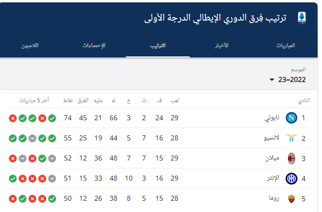 بينما ظل إمبولي في المركز الرابع برصيد 32 نقطة.