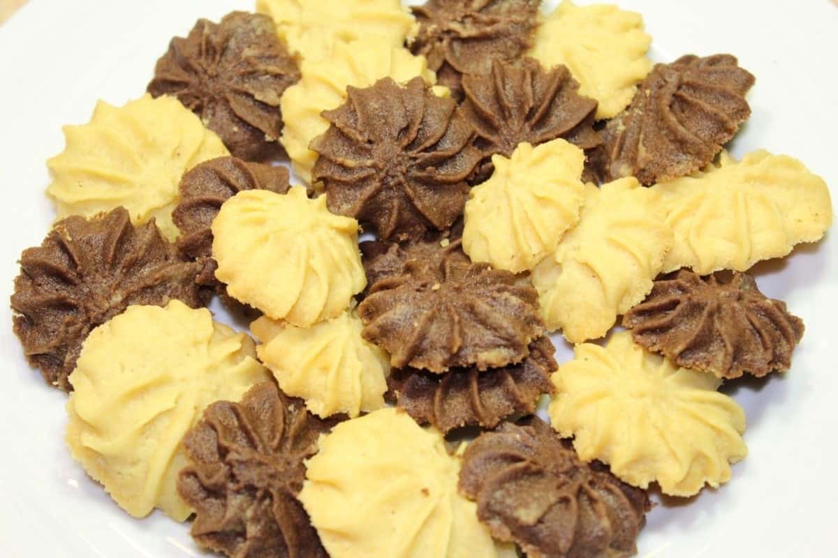 - يتم تقسيم عجينة البيتي فور إلى جزأين ويوضع في جزأ منها بودرة الكاكاو ويتم خفقها في العجينة.