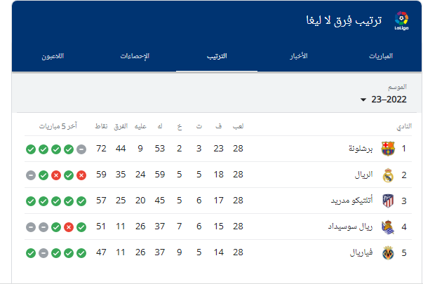 بعدما أهدر برشلونة نقطتين ثمينتين.. ما هو ترتيب الدوري الإسباني لكرة القدم 2022_2023؟