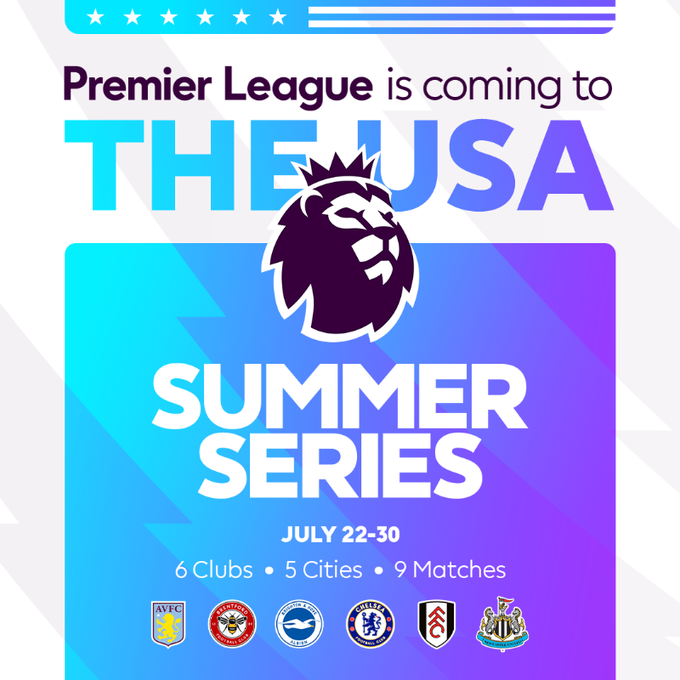وقال الاتحاد الإنجليزي لكرة القدم، في بيان رسمي نشره عبر موقعه الإلكتروني: "الدوري الإنجليزي قادم إلى الولايات المتحدة الأمريكية في الفترة من 22 إلى 30 يوليو 2023، بمشاركة ستة نواد في خمس مدن بمجموع تسع مباريات".