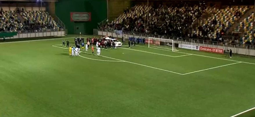 وخرج حارس الجيش في سيارة إسعاف متأثرا بالإصابة.
