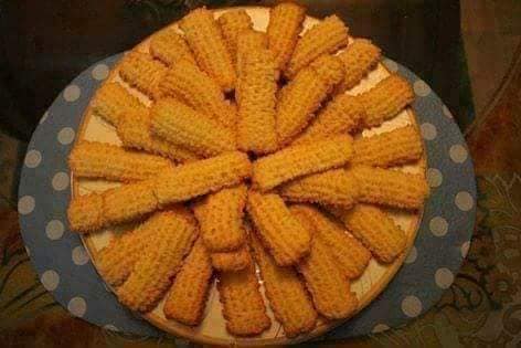 - ثم نشكل عجينة البسكويت وتوضع فى الصينية، ويدهن وجه البسكويت بالبيض.