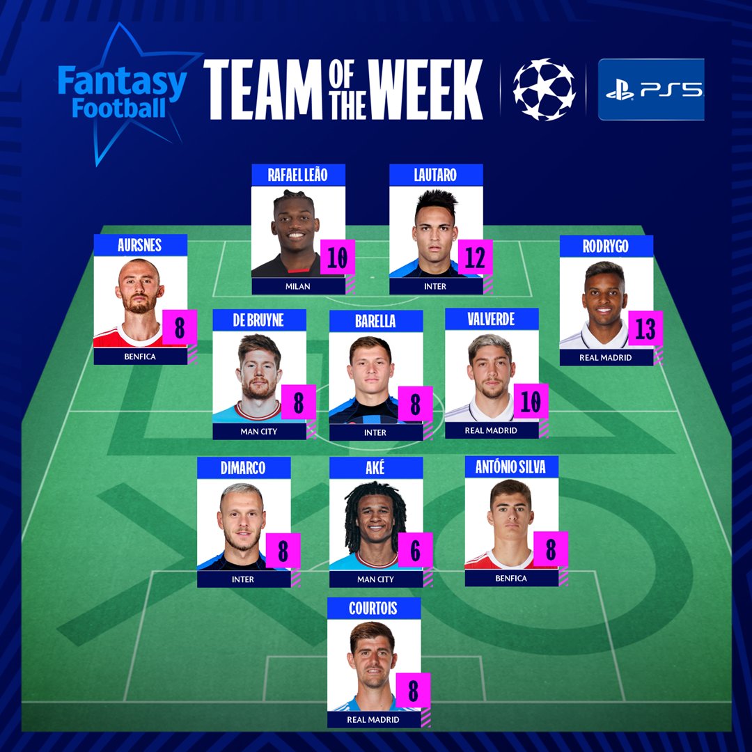 خط الدفاع: أنطونيو سيلفا "بنفيكا"، أكاي "مانشستر سيتي"، ديماركو "إنتر ميلان".
