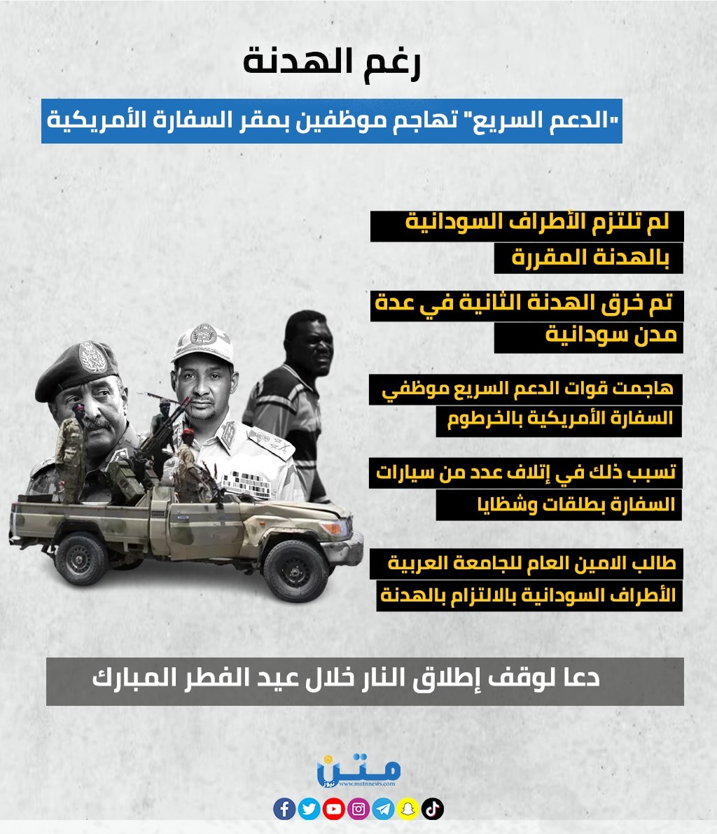 رغم الهدنة.. "الدعم السريع" تهاجم موظفين بمقر السفارة الأمريكية (إنفوجراف)