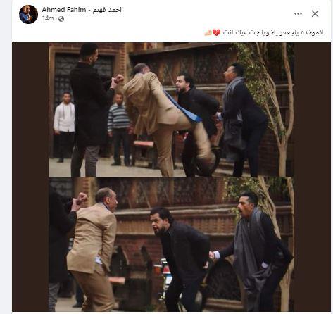 ونشر فهيم صورة من كواليس الحلقة الأخيرة عبر حسابه الرسمي على "فيس بوك" وعلق قائلًا: "لا مؤاخذه يا جعفر يا أخويا جت فيك انت".