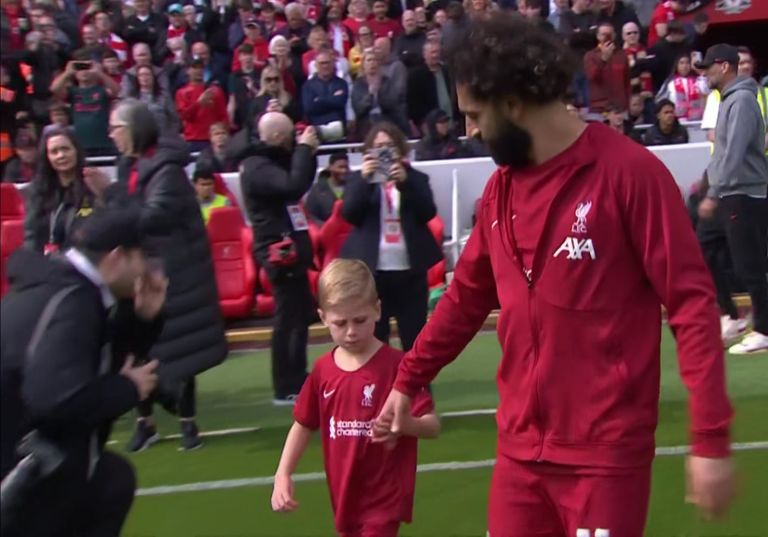 اصطحب النجم المصري محمد صلاح، الطفل ليو نجل أسطورة ليفربول ستيفن جيرارد، خلال دخوله لأرضية الملعب قبل انطلاقة مواجهة نوتنجهام في مشهد رائع.