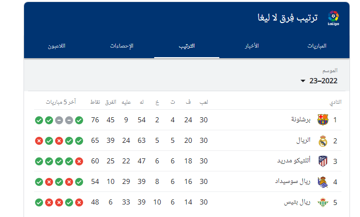 بعد مبارة إشبيلية.. ما هو ترتيب الدوري الإسباني 2022_2023؟