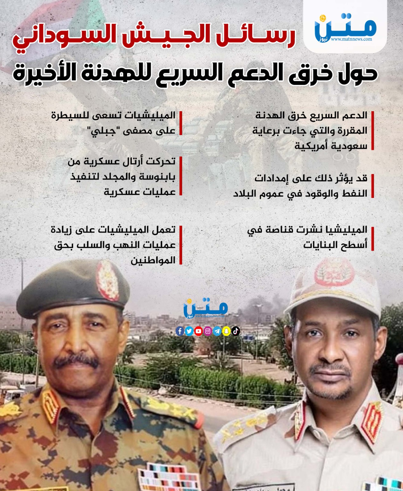 رسائل الجيش السوداني حول خرق الدعم السريع للهدنة الأخيرة (إنفوجراف)
