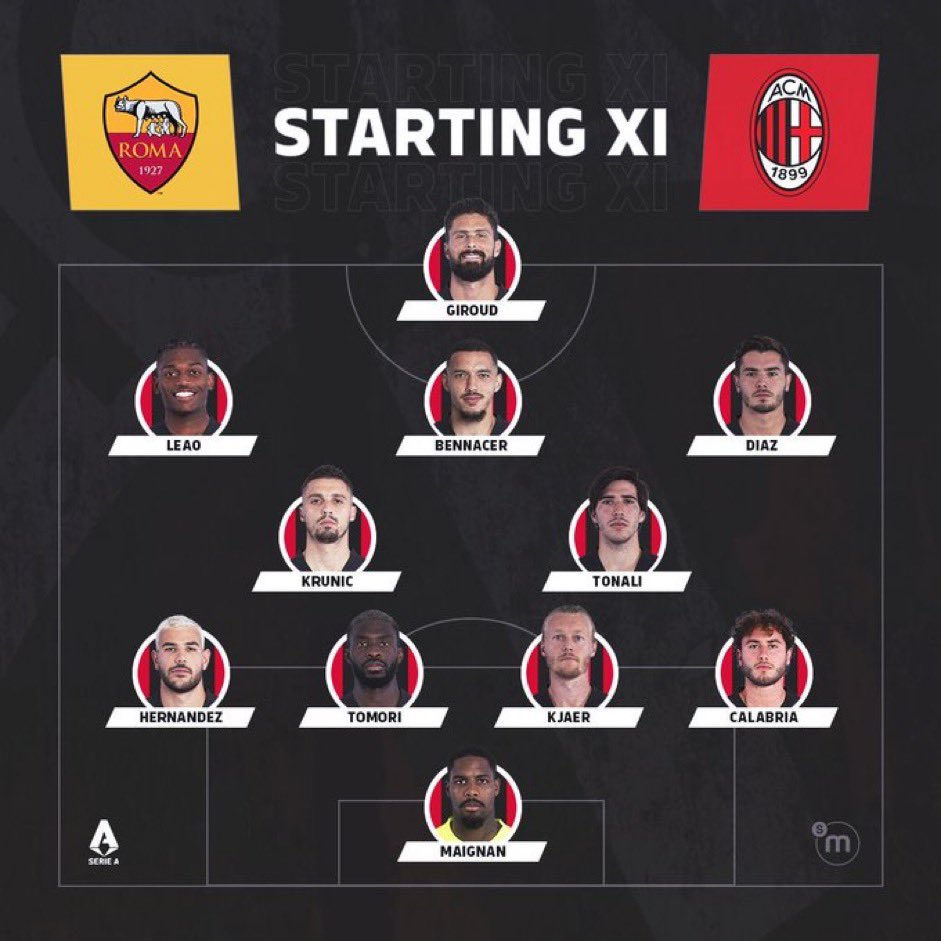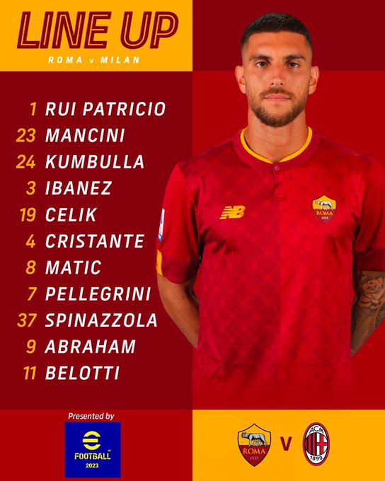 واختار جوزيه مورينيو الدفع بالثنائي تامي أبراهام وأندريا بيلوتي في هجوم روما، وفي المقابل عاد أوليفييه جيرو لقيادة هجوم ميلان بعدما غاب عن لقاء ليتشي الأخير.