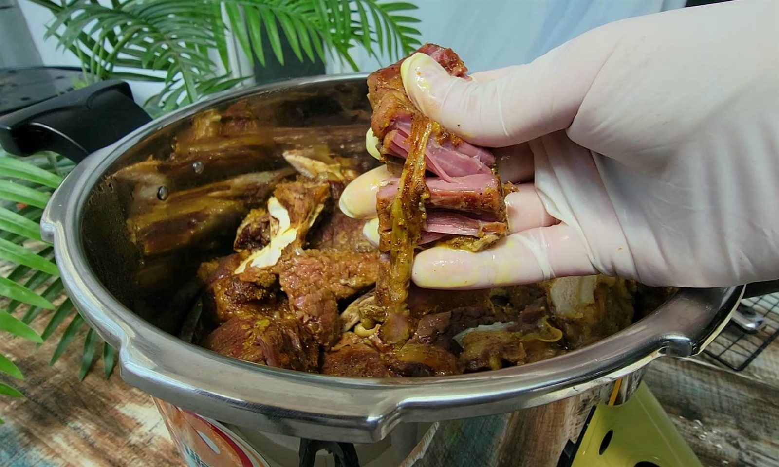 - بعد ذلك توضع اللحم داخل وعاء الضغط، ويترك لمدة ساعة إلا عشر دقائق، وذلك حتى ينضج اللحم بشكل جيد، علما أنه عند وضع نوه البلح، فإنه يساعد على تسوية اللحم سريعا